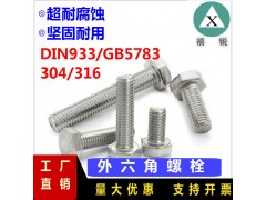 DIN933 外六角螺絲304不銹鋼螺栓 六方頭螺絲M22M24東明螺栓