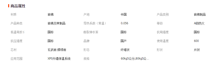 巖棉板基本參數(shù):